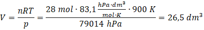 W tym zadaniu oblicz objętość gazu, którego 28 moli pod ciśnieniem 78 atm ma temperaturę 900 K.