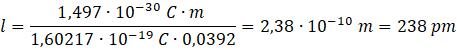 Przekształć wzór na moment dipolowy, tak, by wyznaczyć długość wiązania: