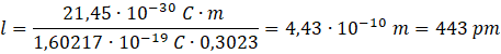 Przekształć wzór na moment dipolowy, tak, by wyznaczyć długość wiązania:
