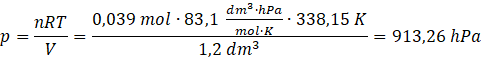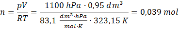 Z równania Clapeyrona oblicz liczbę moli gazu: