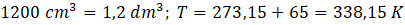 W tym zadaniu oblicz ciśnienie, jakie będzie wywierała taka sama ilość gazu, jeśli większy się objętość do 1200 cm3 oraz temperaturę do 65°C.