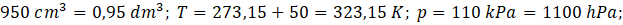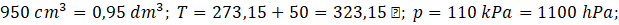 Na początku zamień jednostki, wiedząc, że 1 dm3 = 1000 cm3, 0°C= 273,15 K, oraz 1 kPa = 10 hPa: