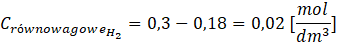Oblicz stężenie równowagowe wodoru: