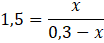 | Crównowagowe [mol/dm3] | 0,3-x | 0,7-x | x |