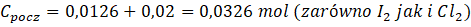 | Crównowagowe [mol/dm3] | 0,0126 | 0,012 | 0,04 |