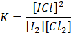 Podstaw dane, za x przyjmujemy stężenie równowagowe jodu i chloru: