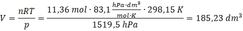 Z równania Clapeyrona oblicz objętość gazu: