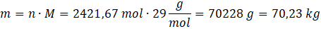 Korzystając z masy molowej powietrza podanej w zadaniu, oblicz masę powietrza i zamień ją na kg, wiedząc, że 1 kg = 1000 g: