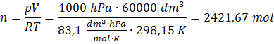Z równania Clapeyrona oblicz liczbę moli powietrza: