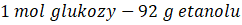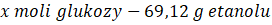 Z 1 mola glukozy stechiometrycznie powstaje 92 g etanolu, więc jeśli otrzymano 69,12 g etanolu to: