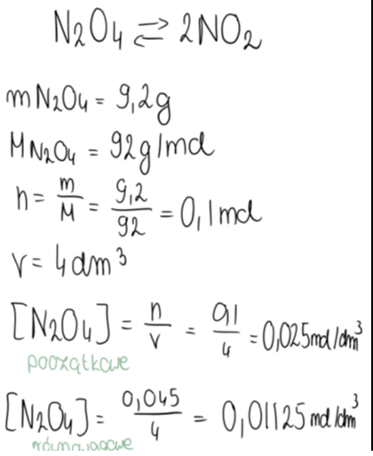Zapisz wyrażenie opisujące stałą równowagi opisanej reakcji i oblicz jej wartość.
