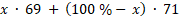 6972,3 = 69x + 7100 – 71x