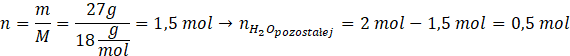 Wiemy, że w wyniku ogrzewania masa próbki zmieniła się o 15,69%, więc obliczmy masę wody odparowanej: