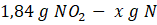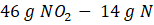 Znając masę molową tlenku azotu(IV) można stwierdzić, że w 46 g NO2 jest 14 g N, więc w 1,84 g NO2 jest x g N: