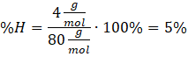 Skład procentowy pierwiastka w związku chemicznym można obliczyć dzieląc iloczyn ilości atomów pierwiastka i jego masy molowej przez masę molową całego związku chemicznego. Następnie wynik mnoży się przez 100%.