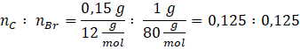 Następnie, aby wyrazić stosunek, w którym na 1 atom węgla przypada x atomów bromu, podziel ten stosunek przez 0,125: