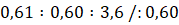 Podziel stosunek przez 0,60, by otrzymać stosunek wyrażony liczbami całkowitymi: