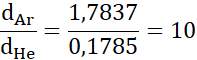 Odpowiedź: Gęstość helu jest 10 razy mniejsza od gęstości argonu.