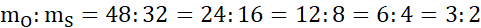 Stosunek masowy to stosunek mas pierwiastków w danym związku wyrażony za pomocą najmniejszych liczb całkowitych, które spełniają ten stosunek (1:16 jest jak 2:32).