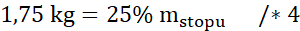 Znając masę jednego składnika, oblicz masę całego stopu na podstawie znajomości jego zawartości procentowej w tym stopie. Skoro 25% całego stopu to ołów, to cały stop będzie miał masę 4 razy większą od masy ołowiu w tym stopie.