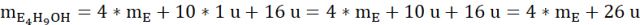 Wiadomo, że ten związek składa się z 4 atomów pierwiastka E o masie mE, 10 atomów wodoru o masie 1 u oraz 1 atomu tlenu o masie 16 u, w takim razie cały związek ma masę