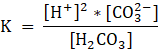 W tym zadaniu musisz zapisać wyrażenie na stałą dysocjacji elektrolitycznej dla roztworu: kwasu węglowego (H2CO3).