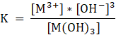 W tym zadaniu musisz zapisać wyrażenie na stałą dysocjacji elektrolitycznej dla roztworu: wodorotlenku metalu o wzorze M(OH)3.