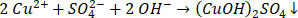 Powstaje hydroksosól miedzi(II), która wykazuje kolor jasnoniebieski, czyli (CuOH)2SO4.
