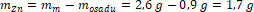 Masa cynku w naszej próbce to różnica między masą próbki, a masą osadu: