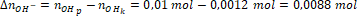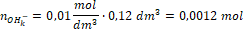 A zatem liczba moli jonów wodorotlenkowych w początkowej mieszaninie wynosi: