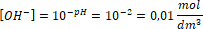 Stężenie jonów wodorotlenkowych równe jest stężeniu wodorotlenku potasu: