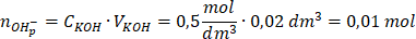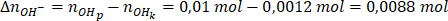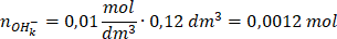 A zatem liczba moli jonów wodorotlenkowych w początkowej mieszaninie wynosi: