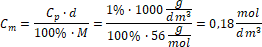 Stężenie molowe wodorotlenku potasu wynosi: