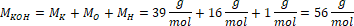Masa molowa wodorotlenku potasu wynosi: