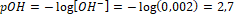 Znając stężenie jonów OH- możemy obliczyć pH.