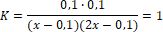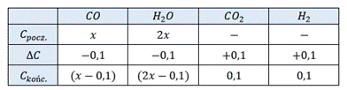 Na podstawie tabeli podstawiamy dane do wyrażenia na stałą równowagi reakcji: