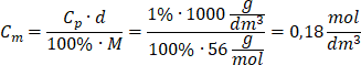 Stężenie molowe wodorotlenku potasu wynosi: