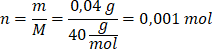 Liczba moli NaOH wynosi: