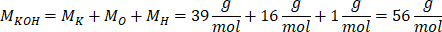 Masa molowa wodorotlenku potasu wynosi: