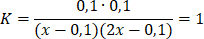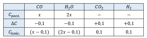 Na podstawie tabeli podstawiamy dane do wyrażenia na stałą równowagi reakcji: