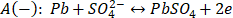 W tym akumulatorze na anodzie zachodzi reakcja utleniania, która prowadzi do pokrywania płytki ołowianej siarczanem(VI) ołowiu(II). Kiedy akumulator ulega rozładowywaniu katoda również pokrywa się solą ołowiu. Równania reakcji obrazujące ten proces to: