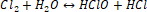 Chlor w wyniku reakcji z wodą chlorową ulega dysproporcjonowaniu, co można zapisać równaniem: