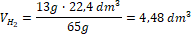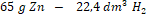 Z 1 mola cynku powstaje 1 mol wodoru, czyli możemy zapisać proporcję: