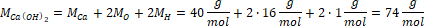 Z układu okresowego pierwiastków odczytujemy masę molową wodorotlenku wapnia: