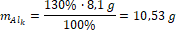 Uwzględniając nadmiar pyłu glinowego obliczamy masę glinu:
