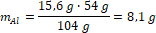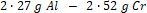 Na bazie równania reakcji można zauważyć, że z 2 moli glinu powstają 2 mole chromu. Obliczmy więc masę glinu potrzebną do otrzymania zadanych 15,6 g chromu: