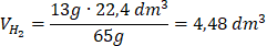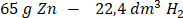 Z 1 mola cynku powstaje 1 mol wodoru, czyli możemy zapisać proporcję:
