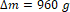 Z danych w zadaniu wiemy, że objętość naczynia zwiększyła się o 960 g, co oznacza, że jest to masa gazu, który uległ reakcji, czyli tlenku siarki(IV).