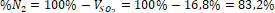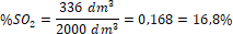 Odpowiedź: Skład mieszaniny gazów wynosi: 16,8% SO2 i 83,2% N2.