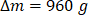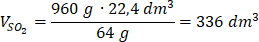 Z danych w zadaniu wiemy, że objętość naczynia zwiększyła się o 960 g, co oznacza, że jest to masa gazu, który uległ reakcji, czyli tlenku siarki(IV).